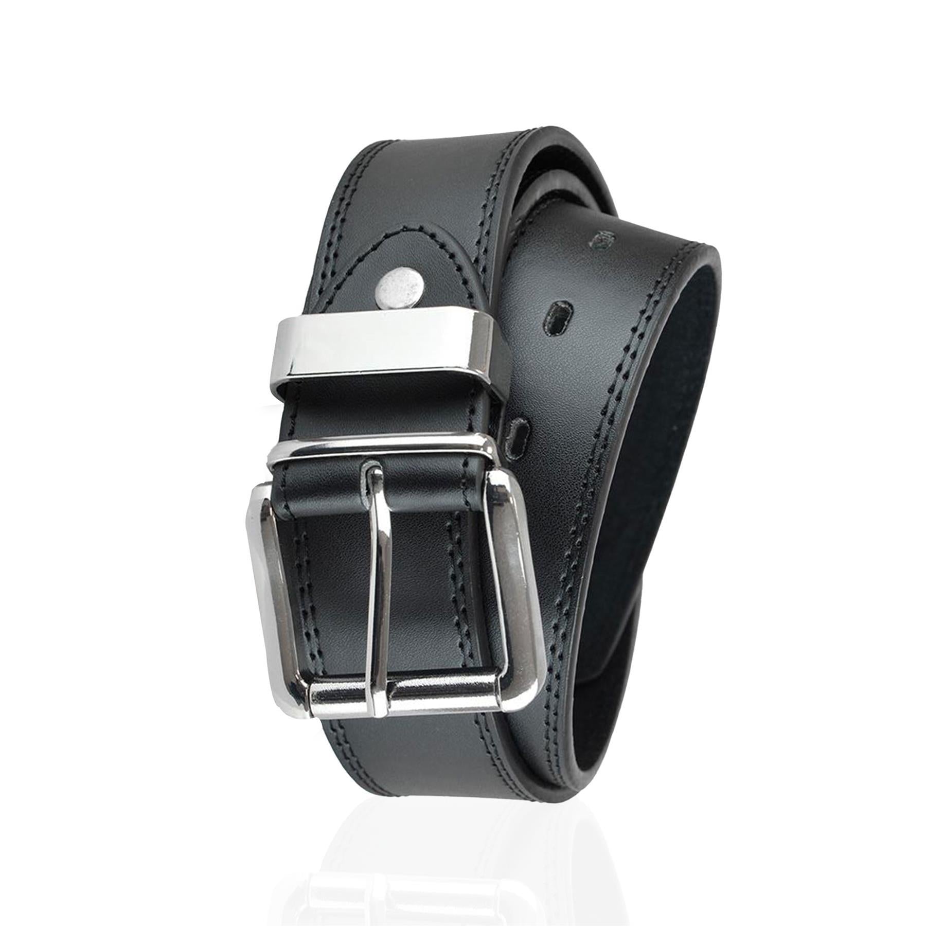 Mens Belt Alloy Pin Buckle Belt 2 Pack Double Stitched Leather Lined Jeans Belts