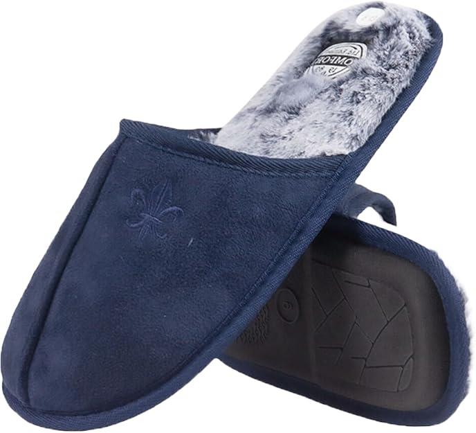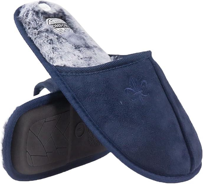 Mens Memory Foam Mule Slippers Quilted Puffa Fleece Lined Slip-On House Shoes