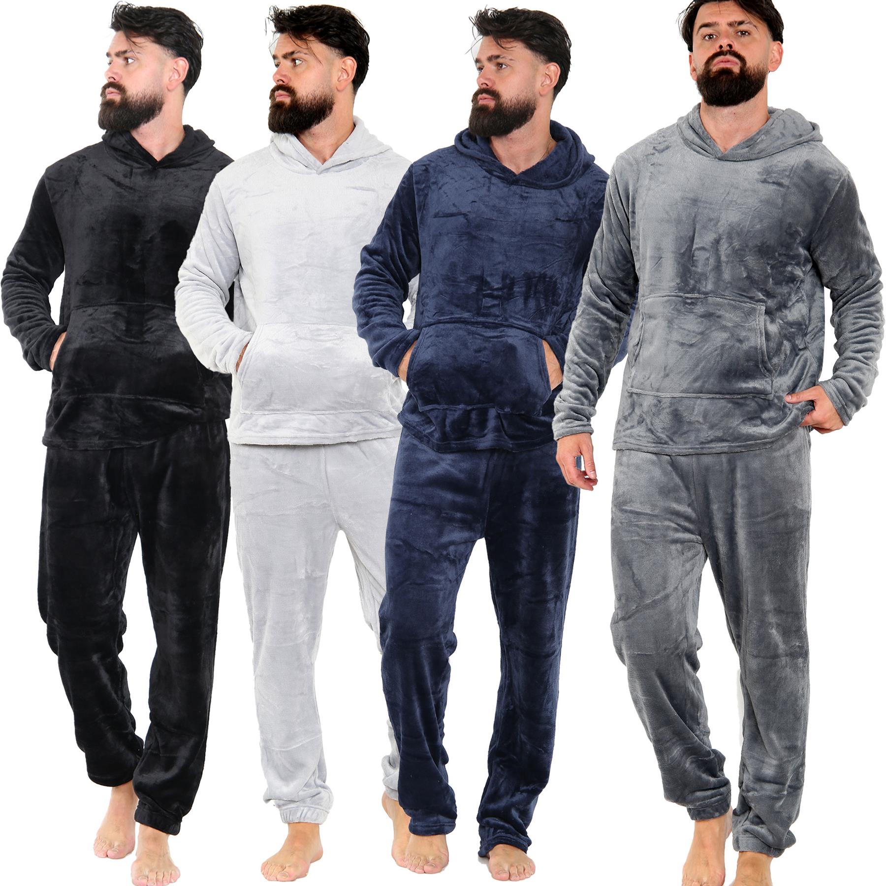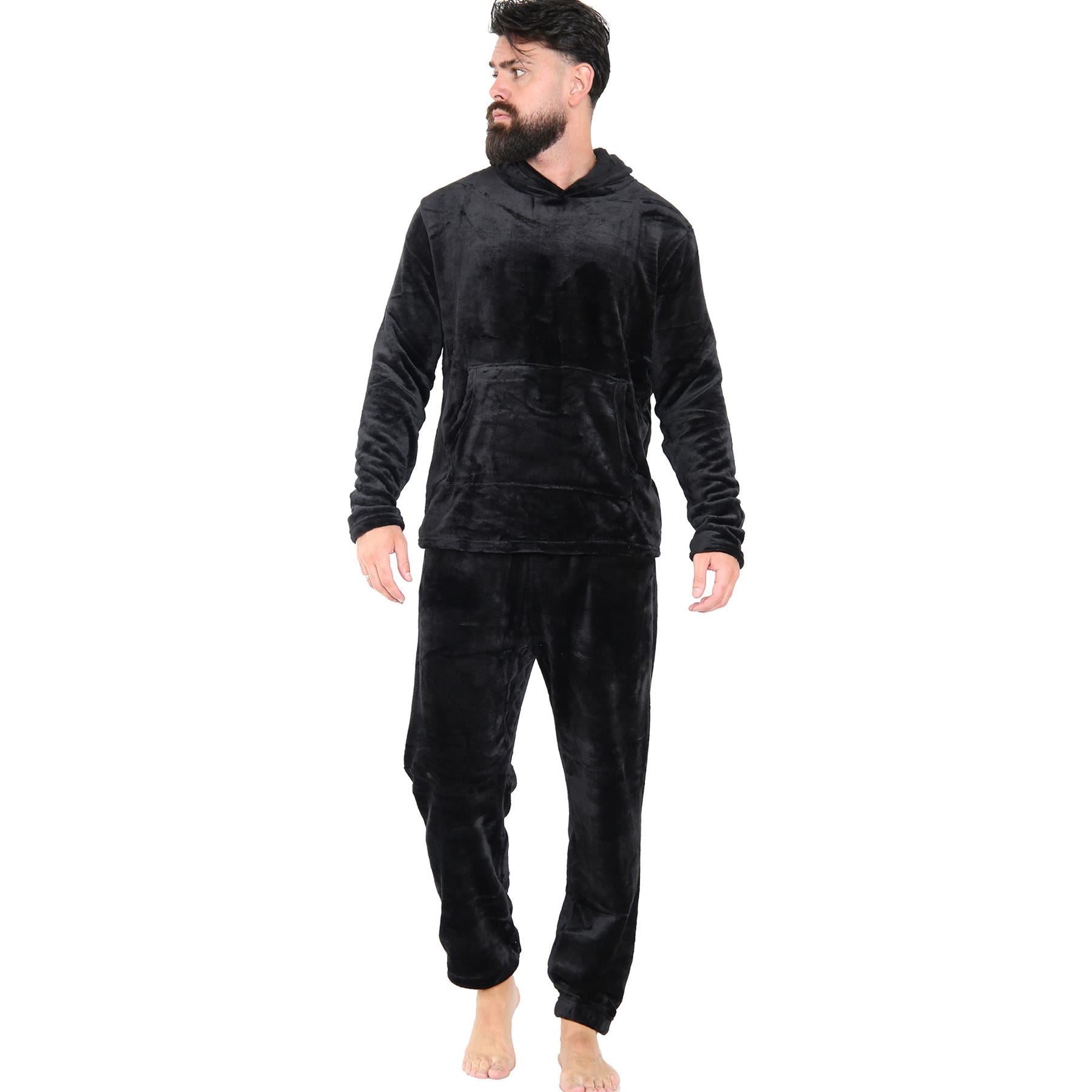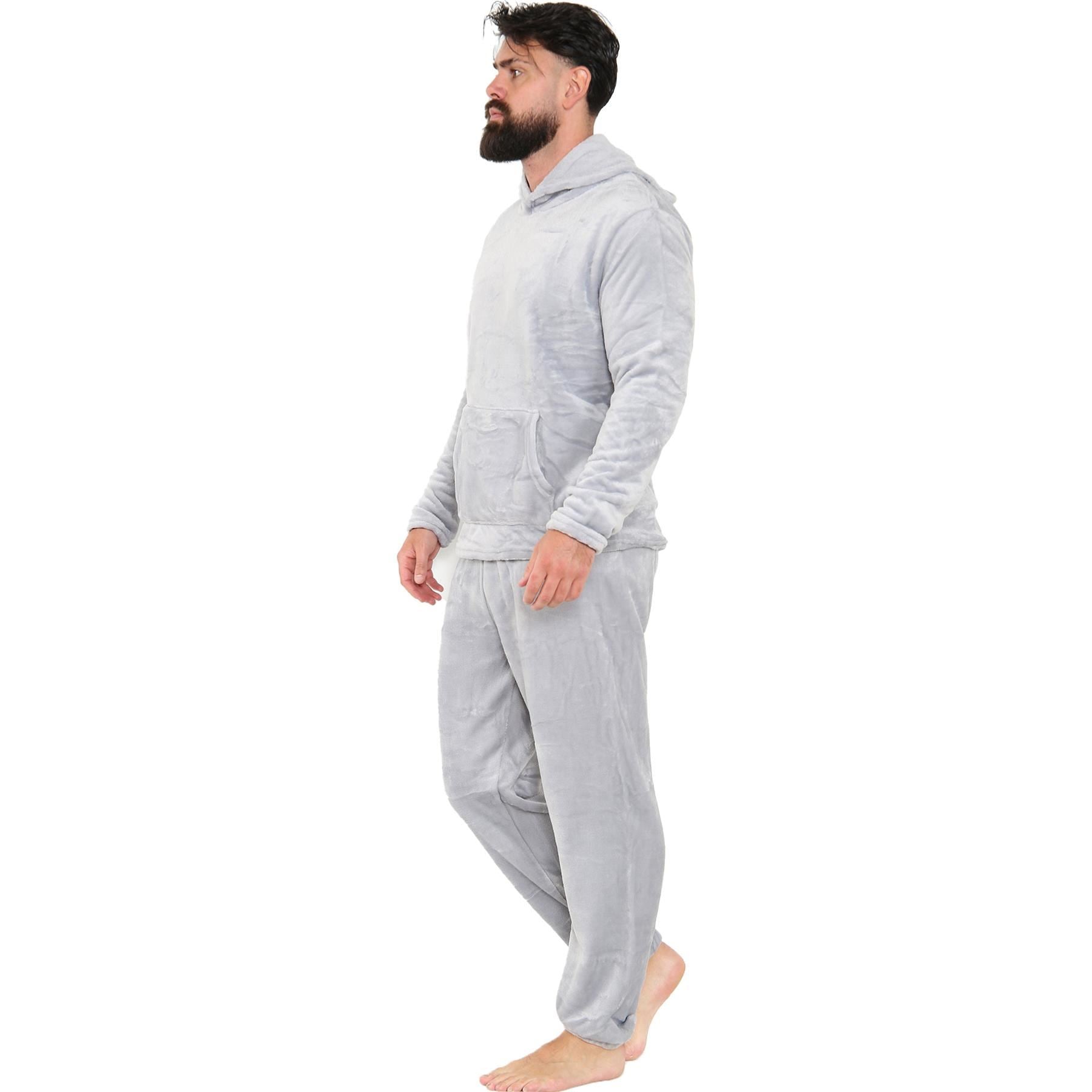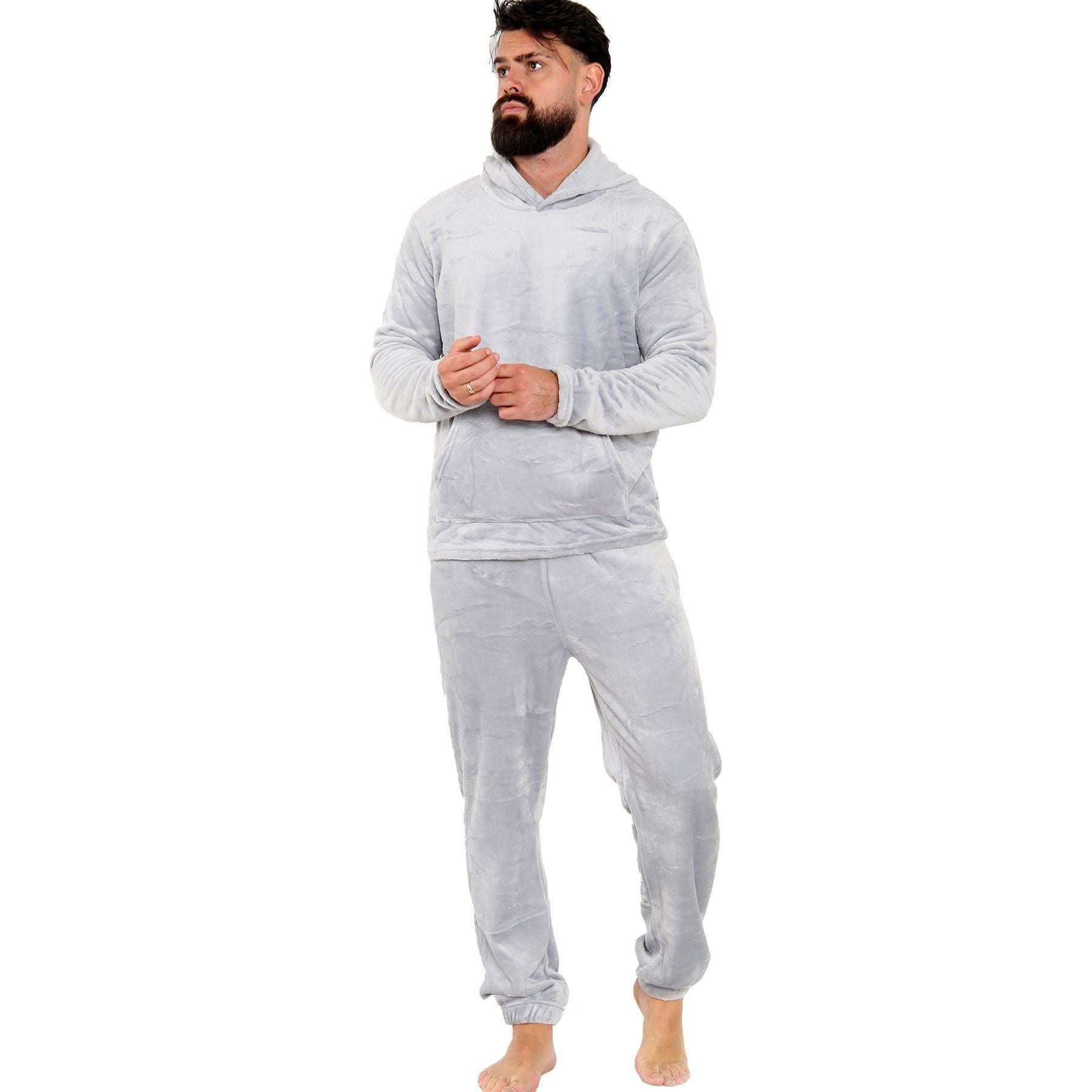 Mens Pyjamas Soft Warm Fleece Adults Hooded Pyjamas 2 Piece Gift Set For Mens