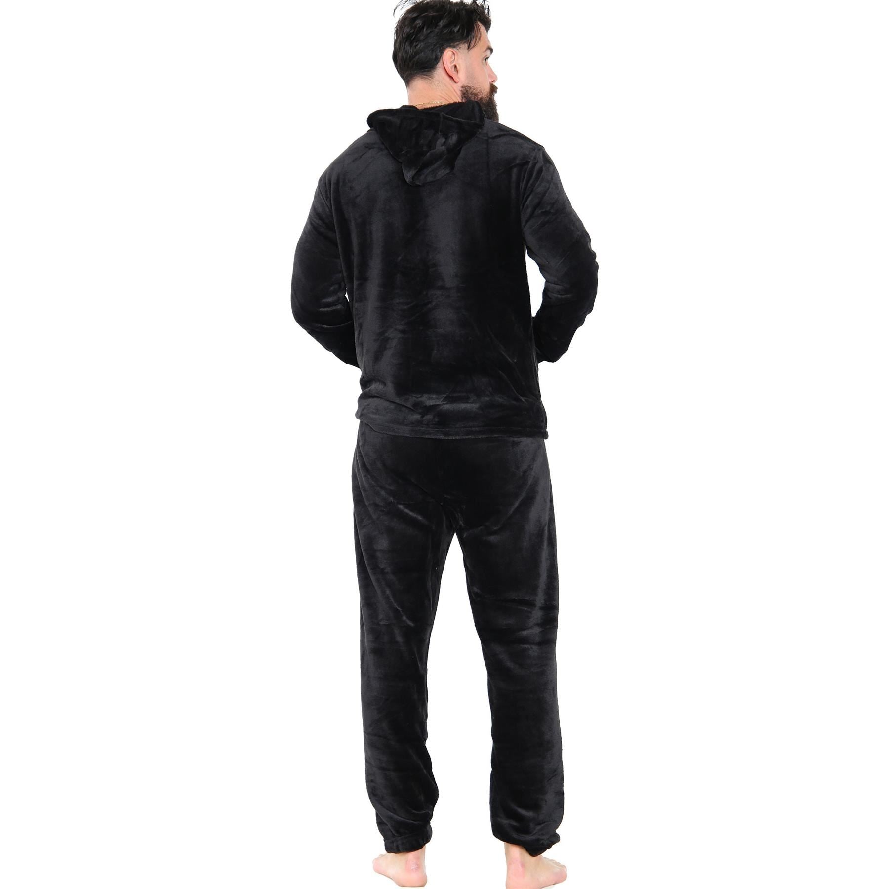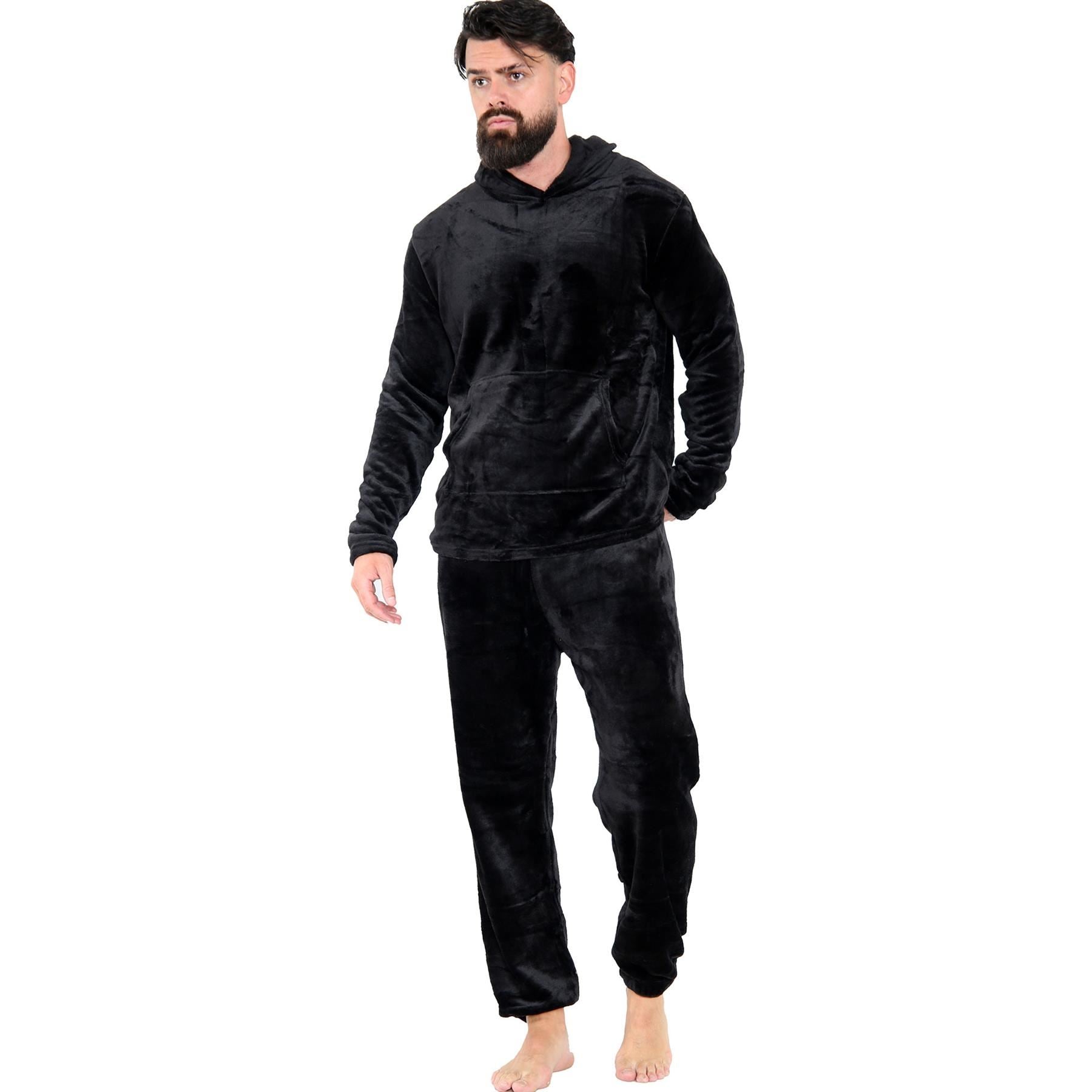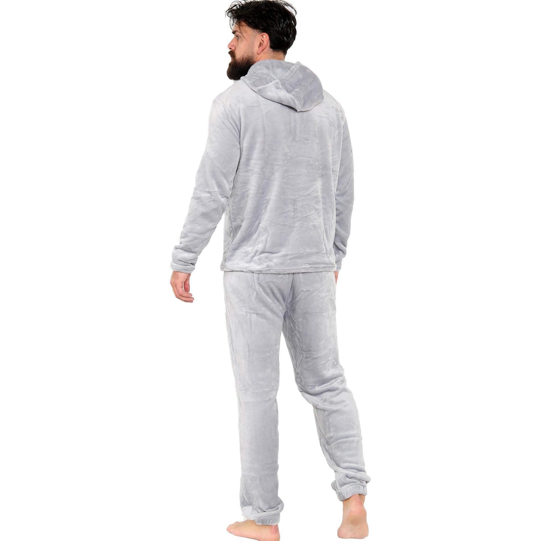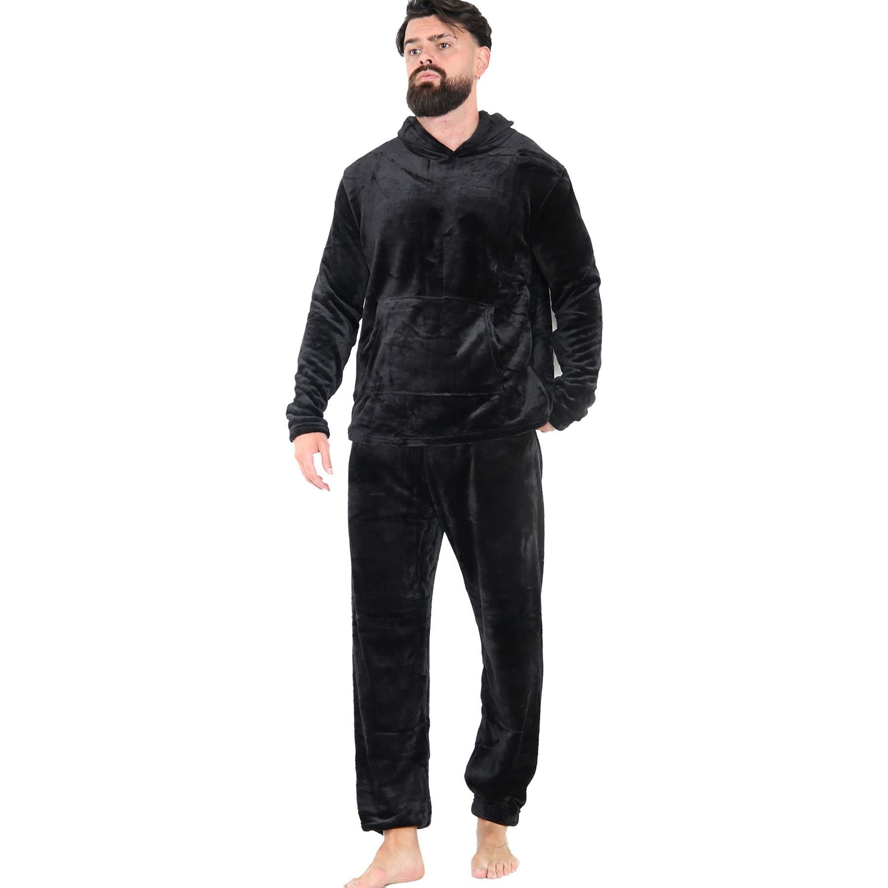Mens Pyjamas Soft Warm Fleece Adults Hooded Pyjamas 2 Piece Gift Set For Mens