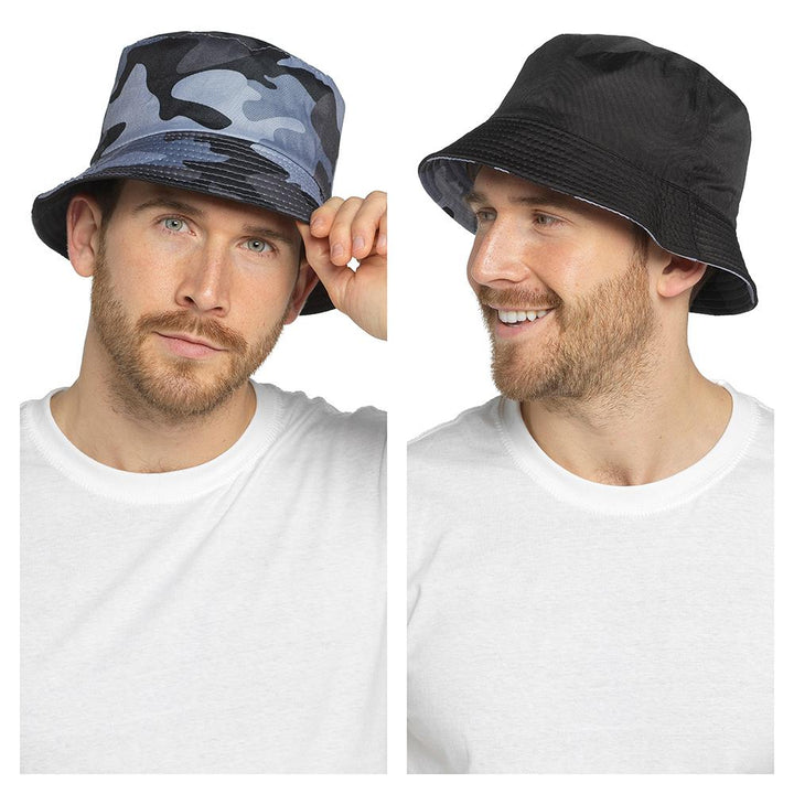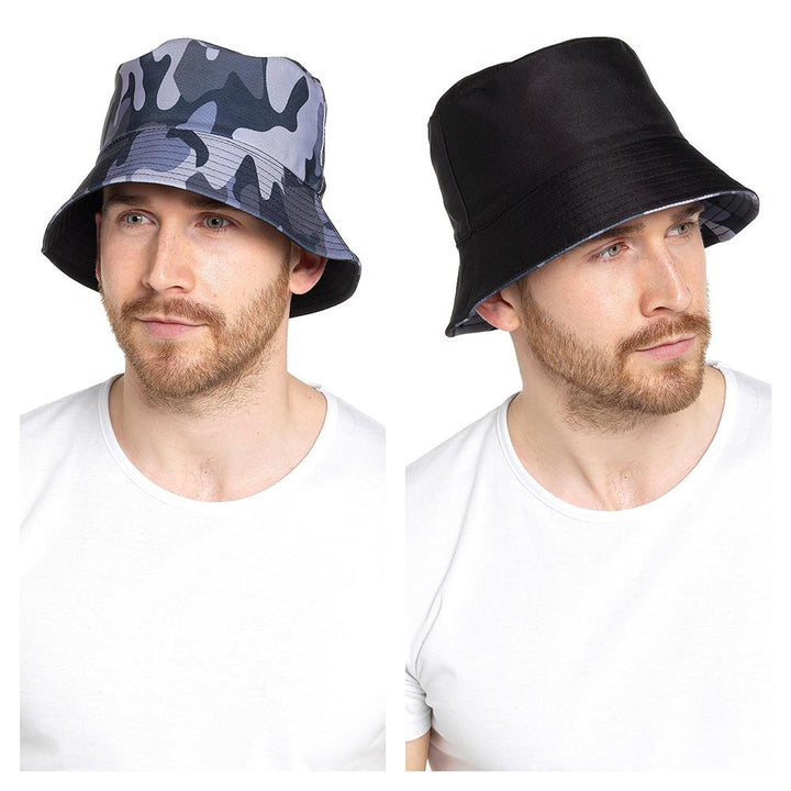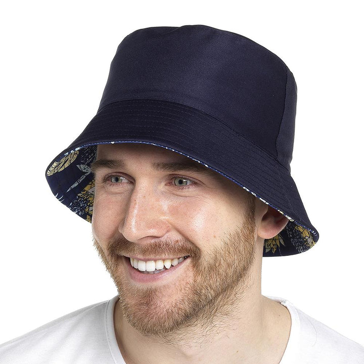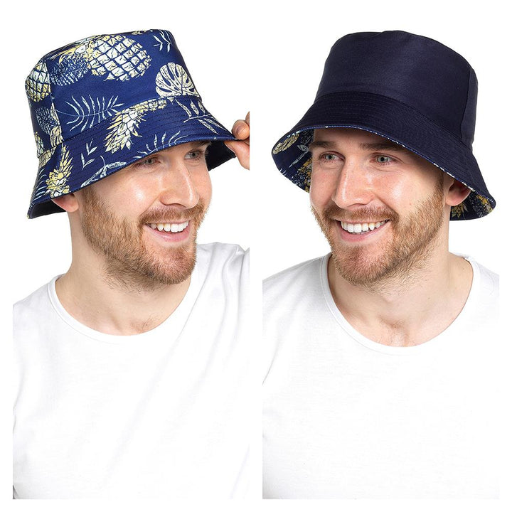 Mens Reversible Bucket Hat Summer Foldable Polyester Sun Protection Hiking Hat