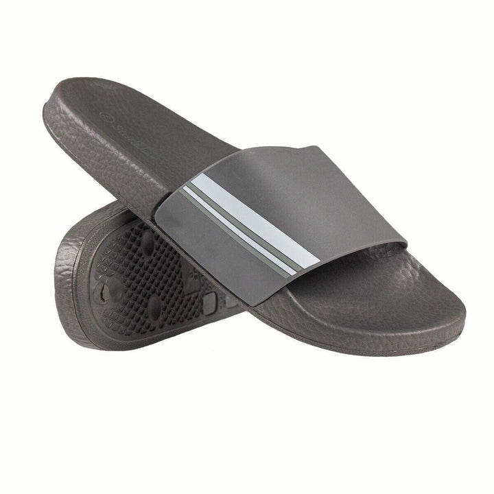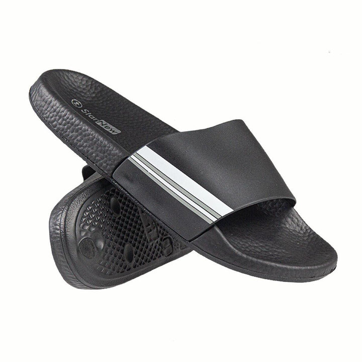 Mens Sliders Open Toe Mules Sports Strip Sandals Anti Slip House Lounge Slippers