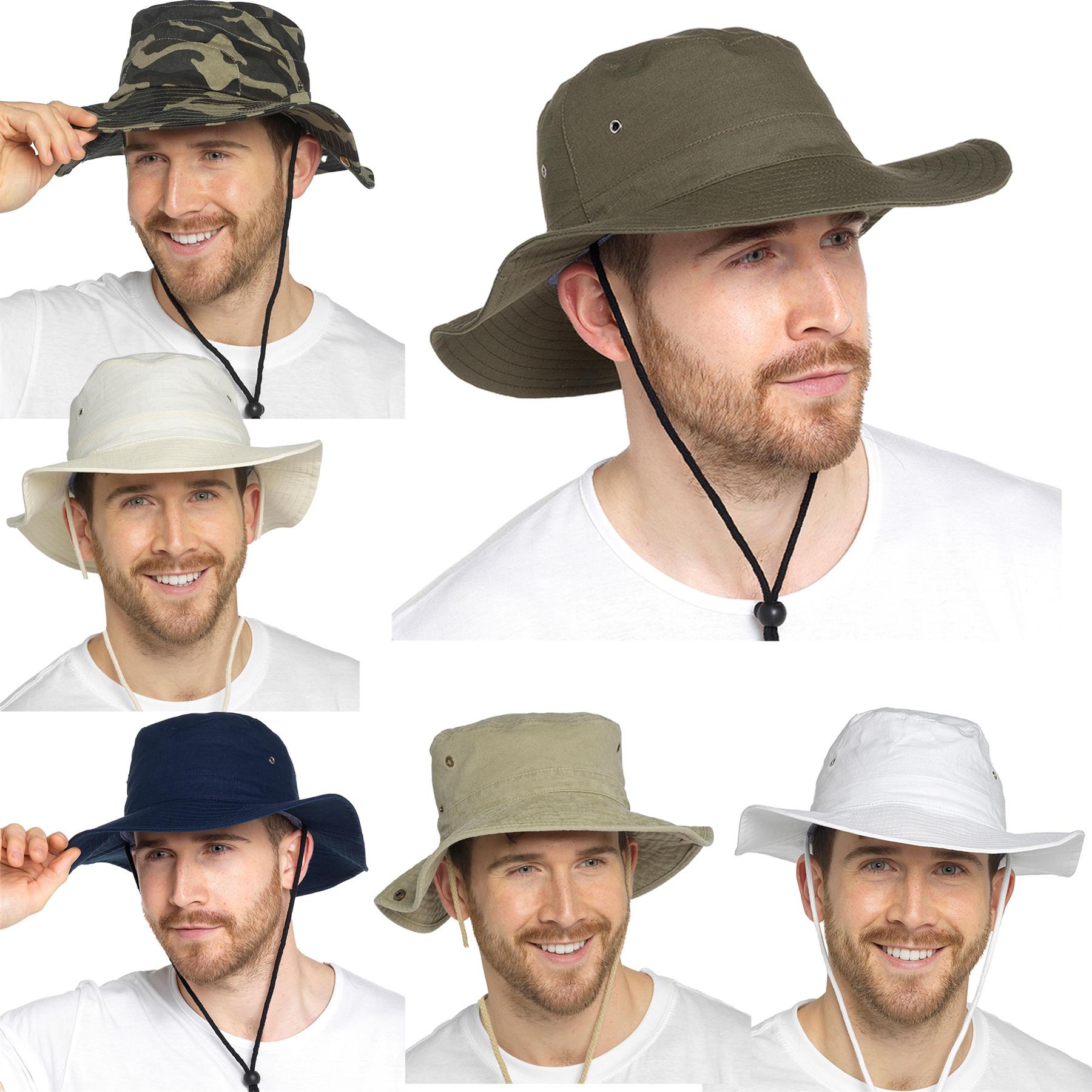 Mens Sun Hats Safari Protection Hat Cotton Breathable With Adjustable Chin Strap