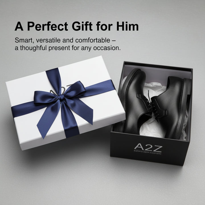 Presented in a sleek A2Z shoe box, these black Derby shoes make a thoughtful and practical gift for birthdays, Fathers Day or festive occasions. Available in UK sizes 7 to 11, their versatile design makes them a wardrobe essential for every modern man.