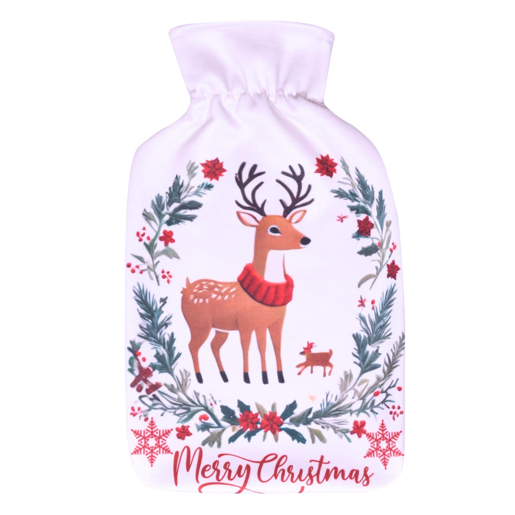 Capacity: 2 Liters- Material: High-quality, leak-proof rubber Cover Material: Soft fleece with Christmas design Dimensions: Approx. 32 cm x 20 cm Weight: 500 grams (approx.) Color: Reindeer White (Christmas theme) -