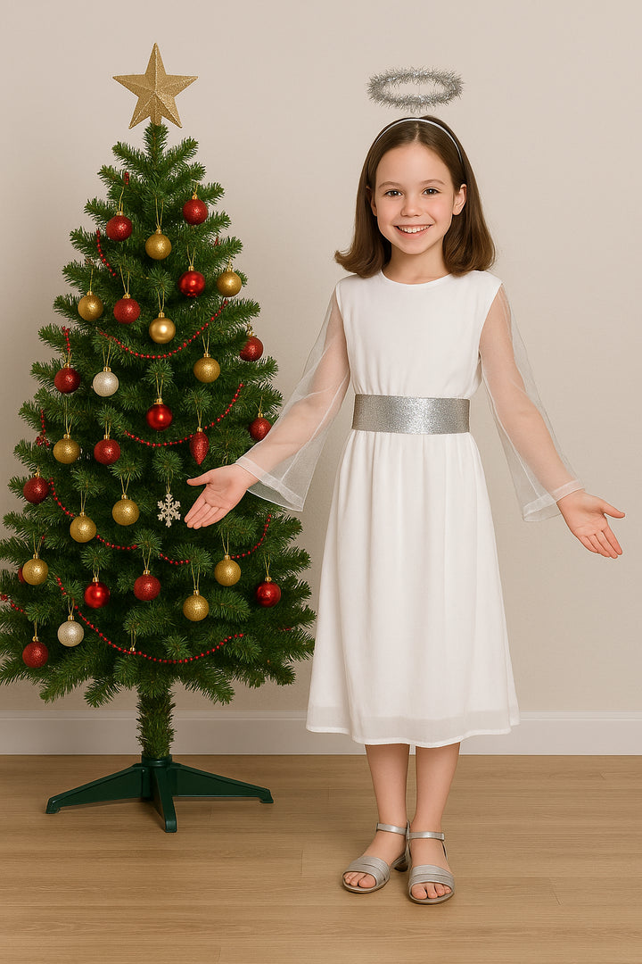 NEW Angel Nativity Dress, Belt and Halo Girls Christmas Fancy Dress Costume
