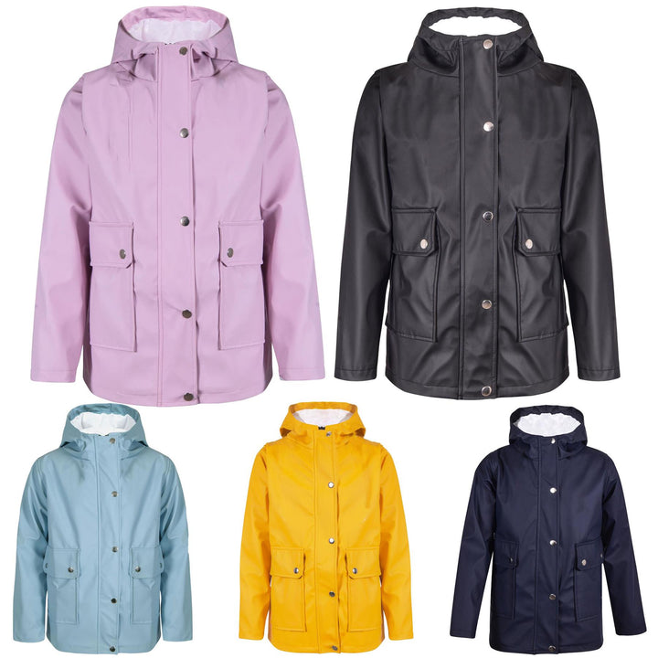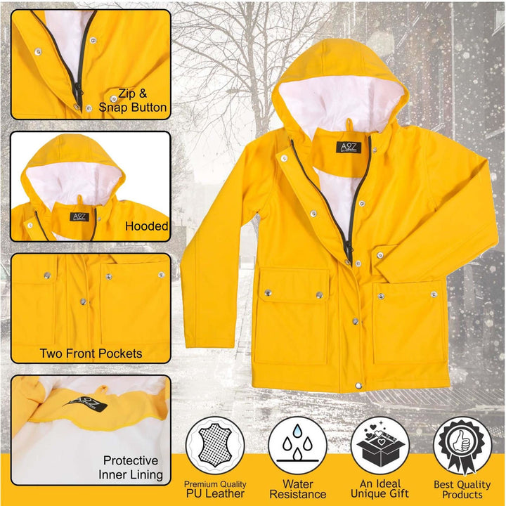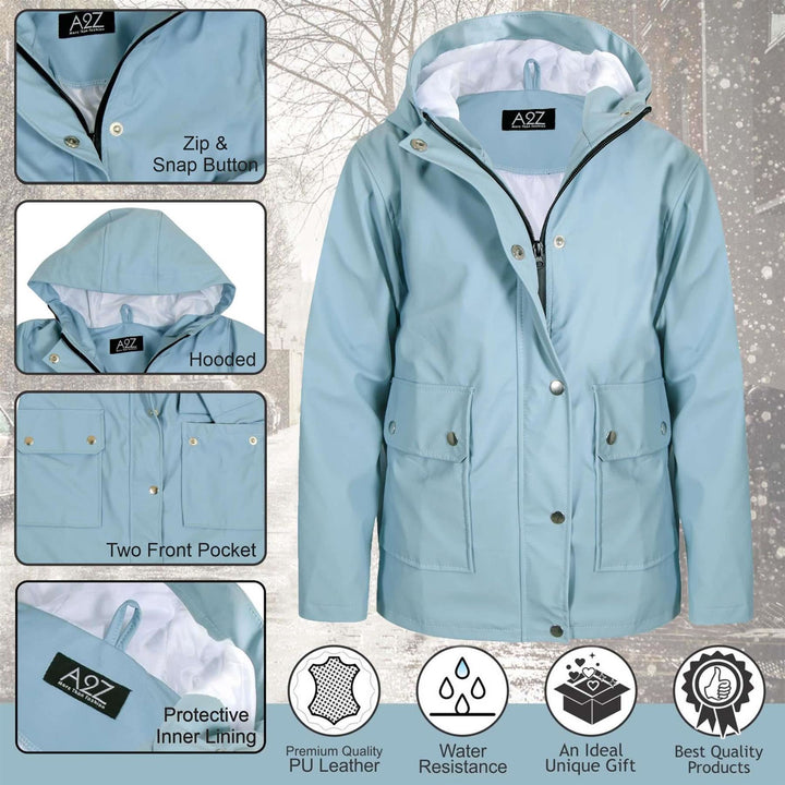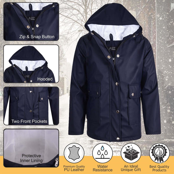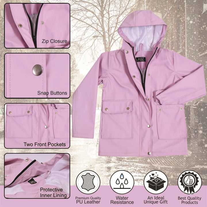 PU Raincoat Jacket Windbreaker Waterproof Parka Hooded For Girls Boys Age 5-13 Years