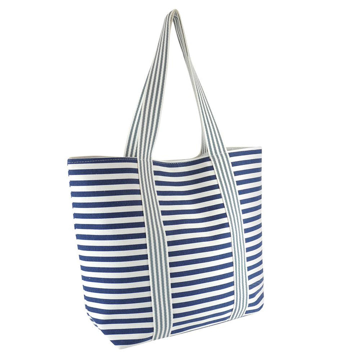 Women Canvas Beach Bag Ladies Blue Striped Shoulder Bag Women Reuseable Tote Bag