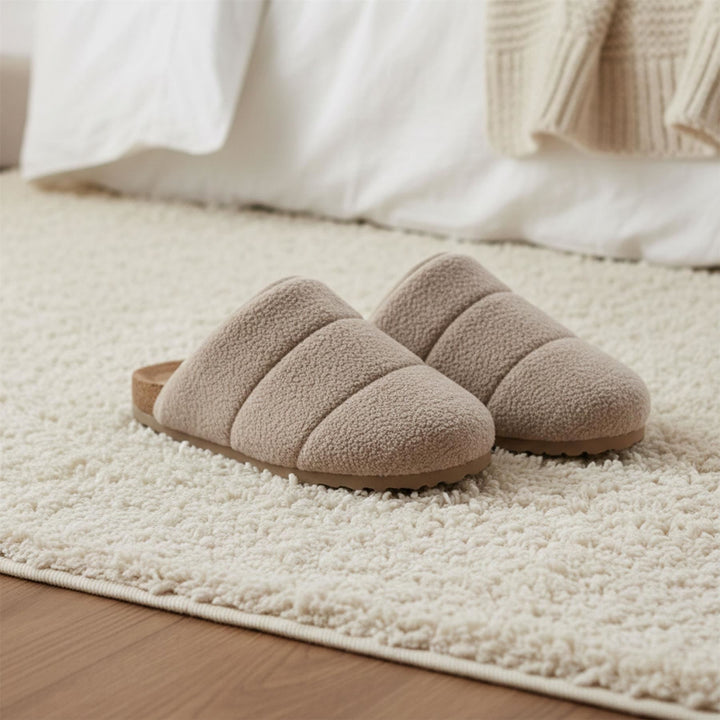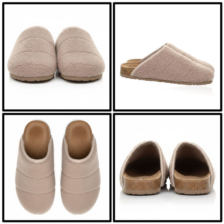 Women Curly Mule Slipper Warm Cozy Memory Foam Slip-on sturdy Cork sole Slider
