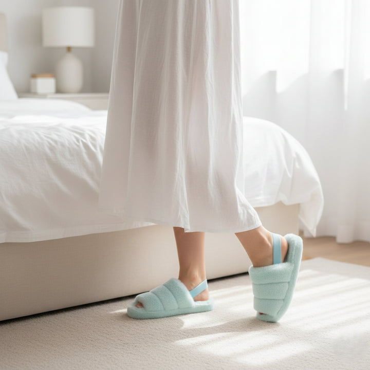 After a tiring day at work, there's nothing better than slipping your feet into some comfortable and fluffy sandals that make every step feel like walking on a cloud. The peep-toe design of these fluffy slipper sliders not only makes them elegant but also breathable. -