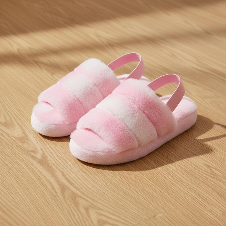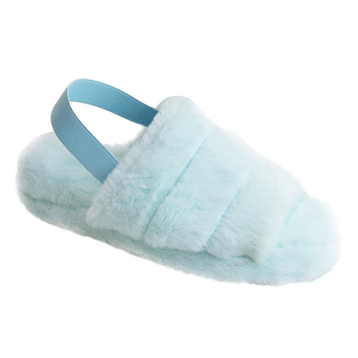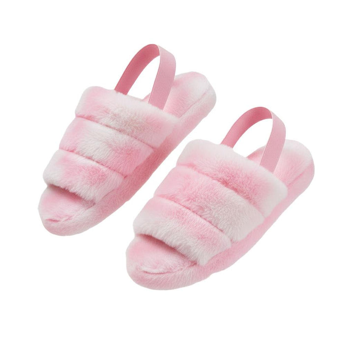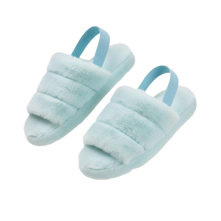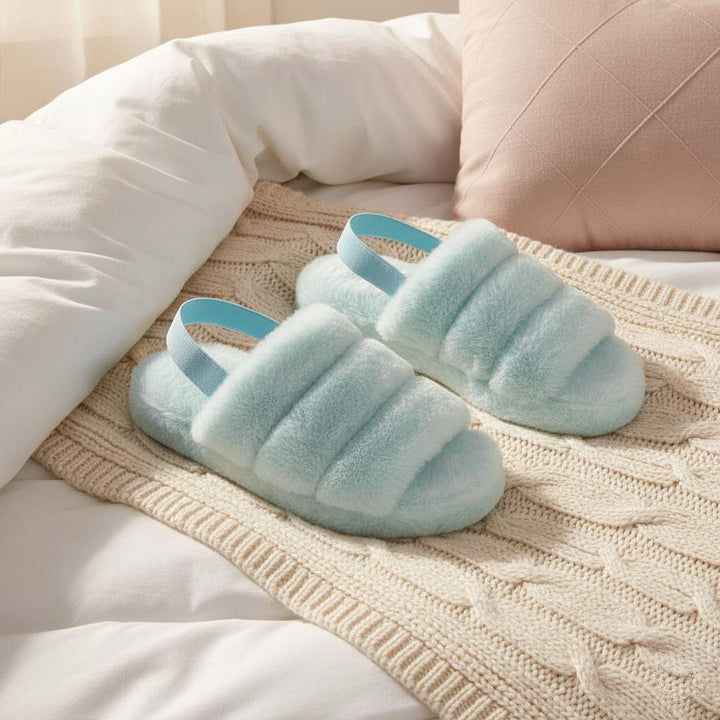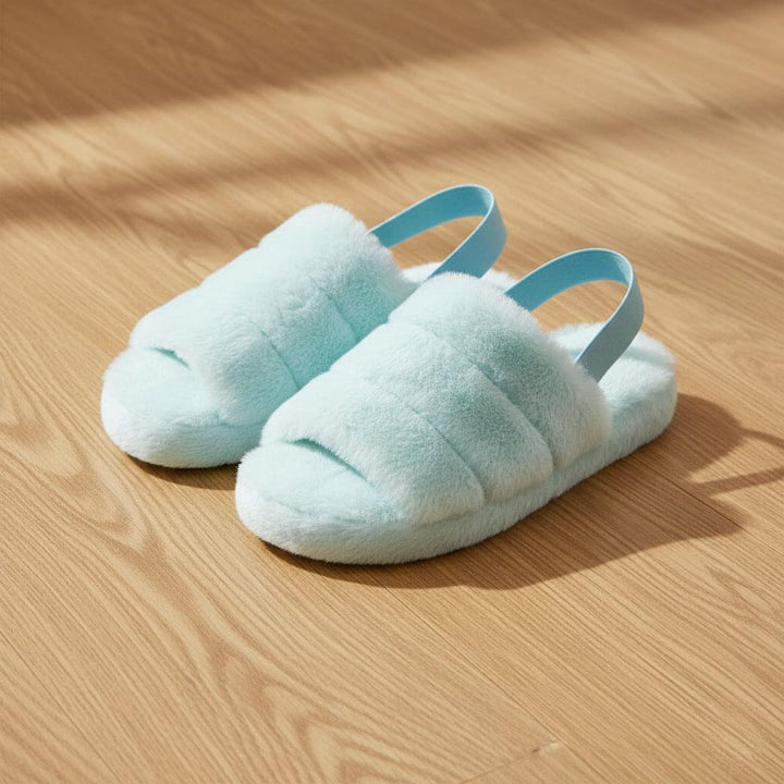 Women Sliders Ladies Fluffy Faux Fur Peep Toe Warm Winter Sandals