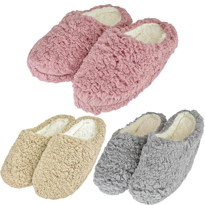 Women Slippers Winter Warm Teddy Fleece Upper Shoft Lining Non-Slip Mule Slipper