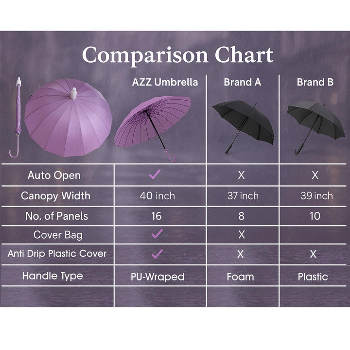 - ? Windproof 16-Rib Design: Reinforced with high-quality metal ribs and shaft, this umbrella is built to resist strong gusts, preventing the canopy from flipping inside out during heavy rain or wind.