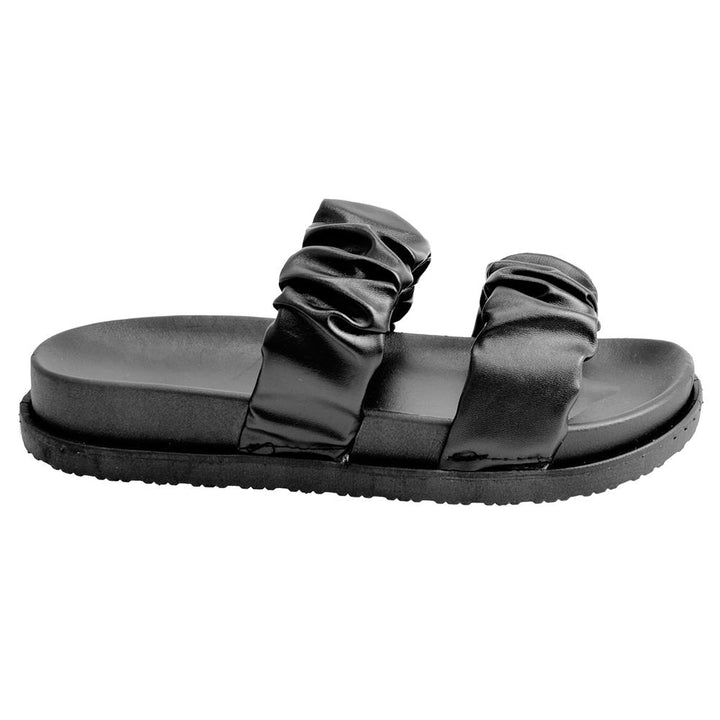 Womens Double Strap Ruched Flat Sandals Slip-On Casual Summer Slider Mule Shoes