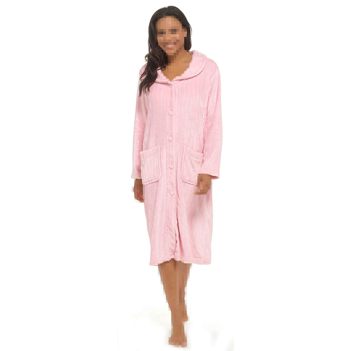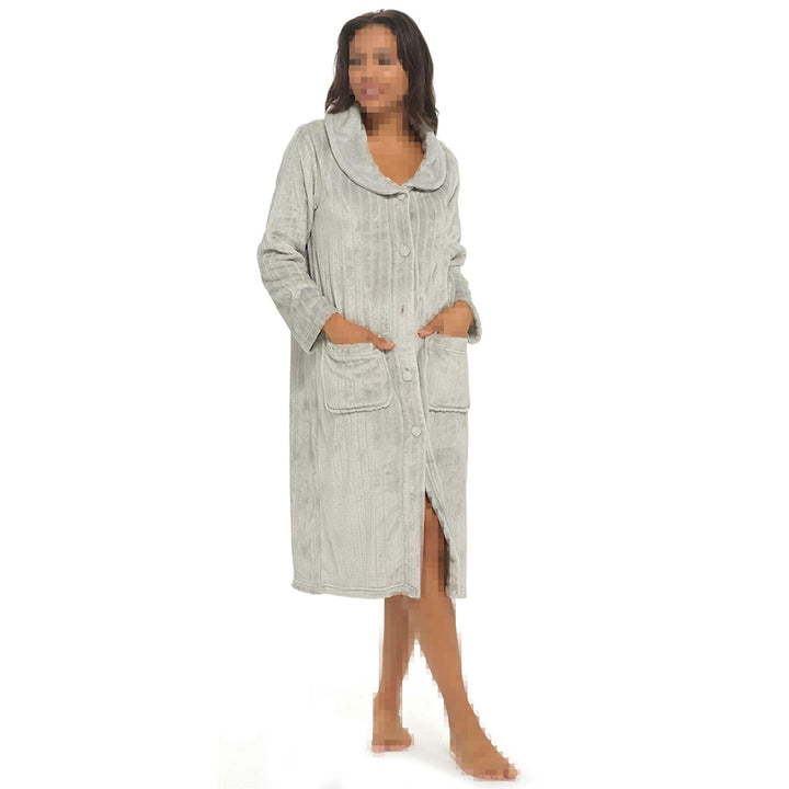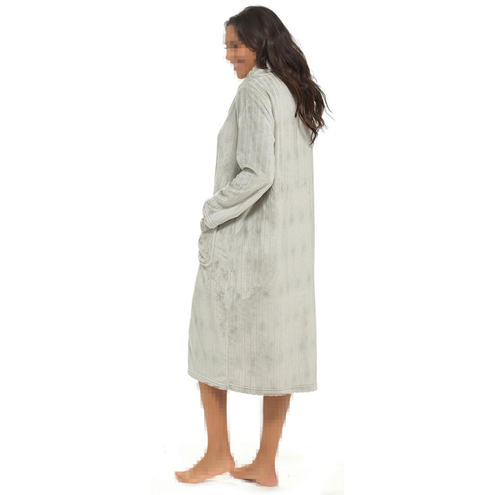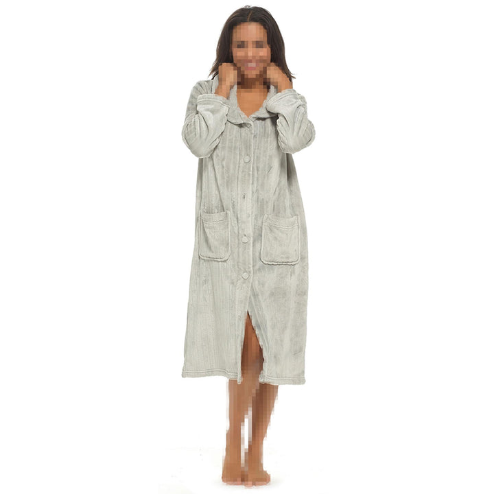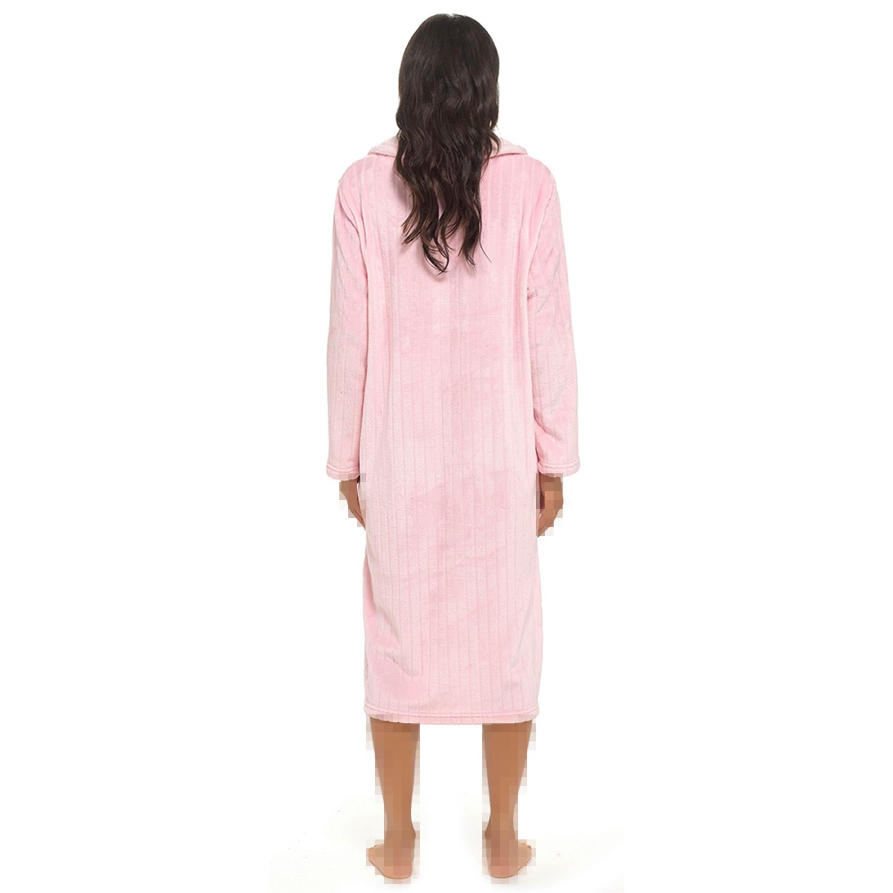 Womens Dressing Gown Soft Fleece Button Fluffy Bathrobe Shawl Collar Ladies Robe