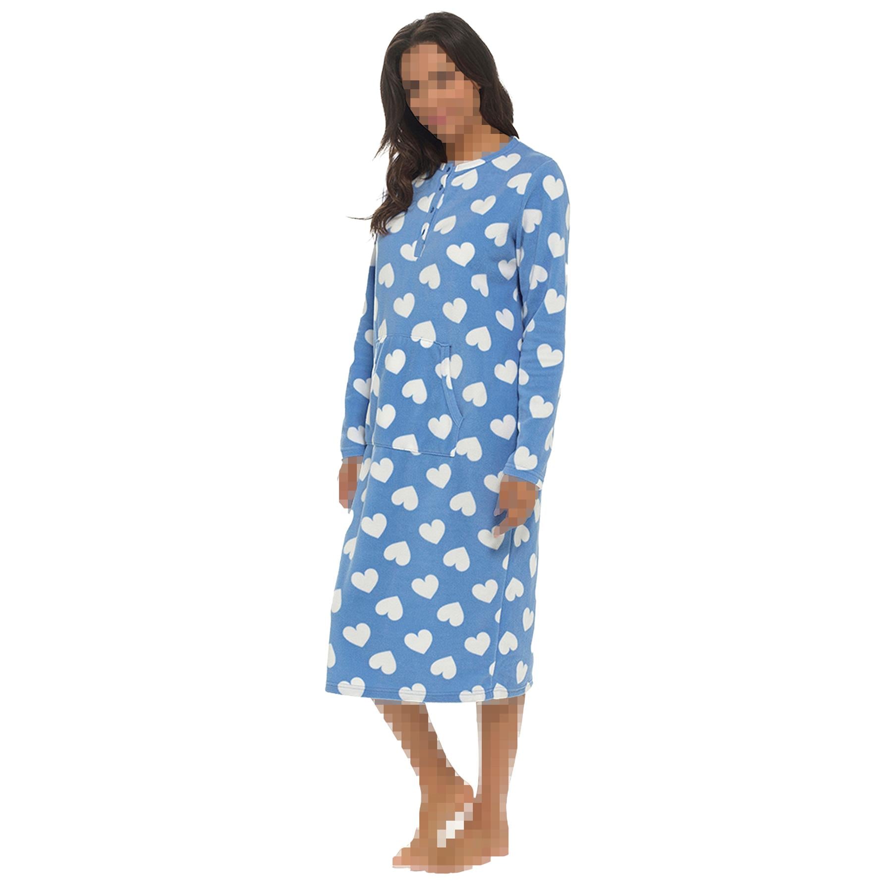 Womens Nightie Polar Fleece Ladies Nightgown Soft Feel Button Placket Sleepwear