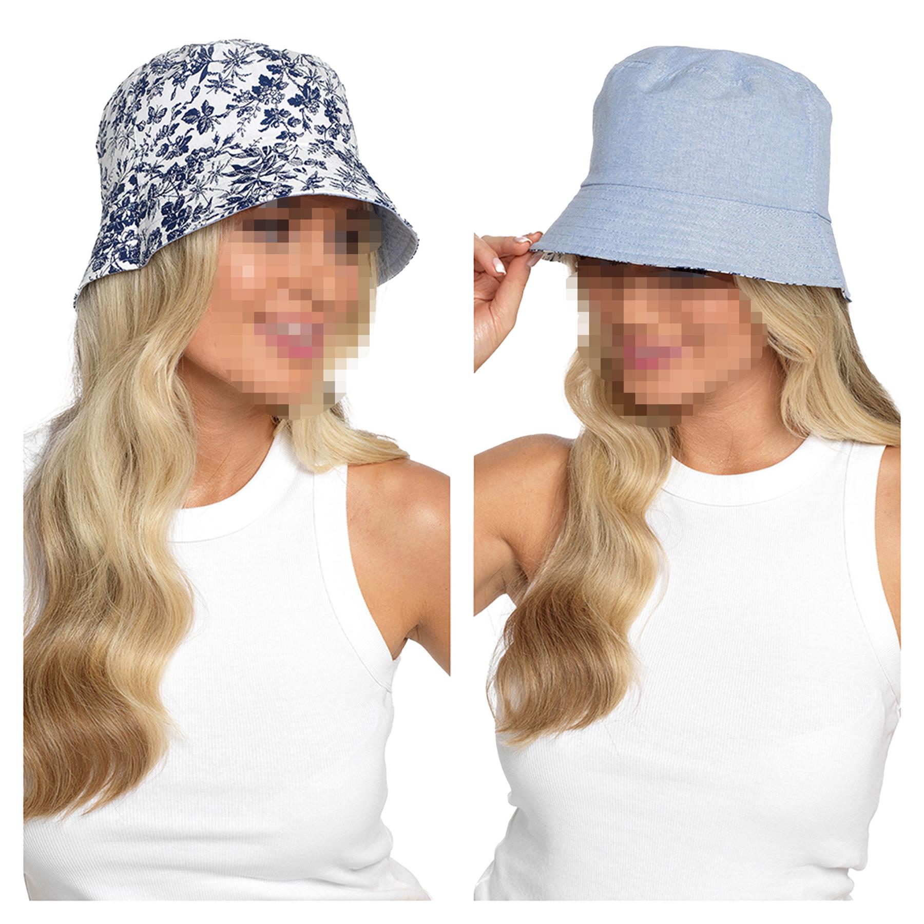 Womens Reversible Bucket Hat Summer Foldable Sun Hat UV Protection For Camping
